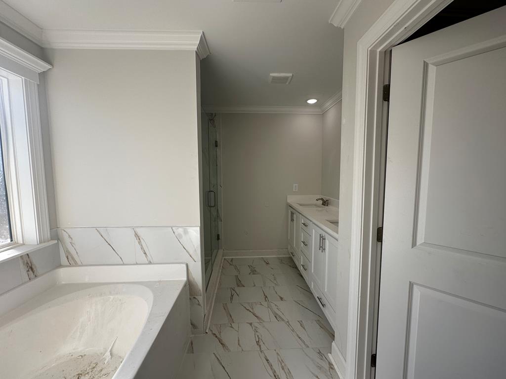 Stunning new construction home in an established neighborhood! This immaculate, brand new construction features a thoughtfully designed split floor plan, offering both privacy and style. With four spacious bedrooms and three full baths, this home is perfect for families or those who love to entertain. Step inside to discover a large kitchen that is sure to impress. The centerpiece is a beautiful island topped with granite countertops, complemented by a charming farmhouse sink. The primary suite is a true retreat, boasting a tranquil atmosphere with a large tile shower, a separate soaking tub, and a stunning vanity that adds a touch of sophistication. The two bedrooms share another bathroom, showcasing custom cabinetry that provides both storage and style. The third bedroom has its own private bath, perfect for guests. Enjoy the outdoors with a covered patio. It is perfect for relaxing or entertaining in the backyard. Nestled in an established neighborhood with appealing sidewalks, this home offers a sense of community and convenience. Don't miss your chance to own this incredible property-schedule a showing today and experience the beauty and comfort it has to offer!
